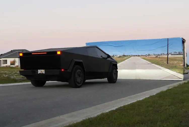 Inspirado por el experimento de Rober, el creador Kyle Paul decidió llevar las pruebas un paso más allá. En un video reciente publicado en YouTube, Paul replicó la idea de los muros falsos, pero esta vez utilizando dos vehículos Tesla con diferentes configuraciones. Uno de ellos era un Model Y equipado con el hardware HW3, mientras que el otro era un Cybertruck dotado con el más avanzado HW4/AI4 y cámaras mejoradas.