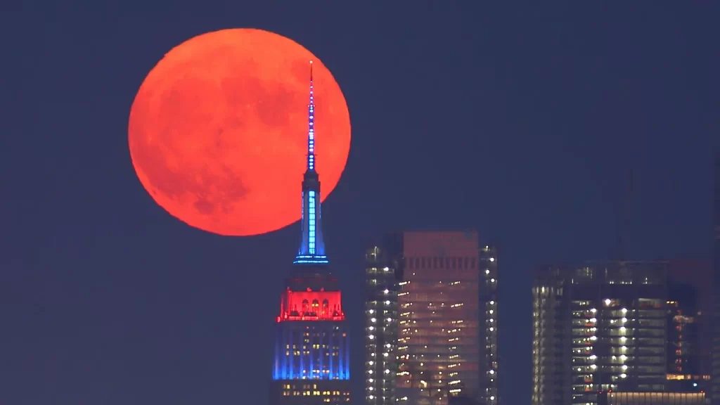 Nueva York: Puesta de sol a las 8:29 p.m. EDT, salida de la Luna a las 8:54 p.m. EDT